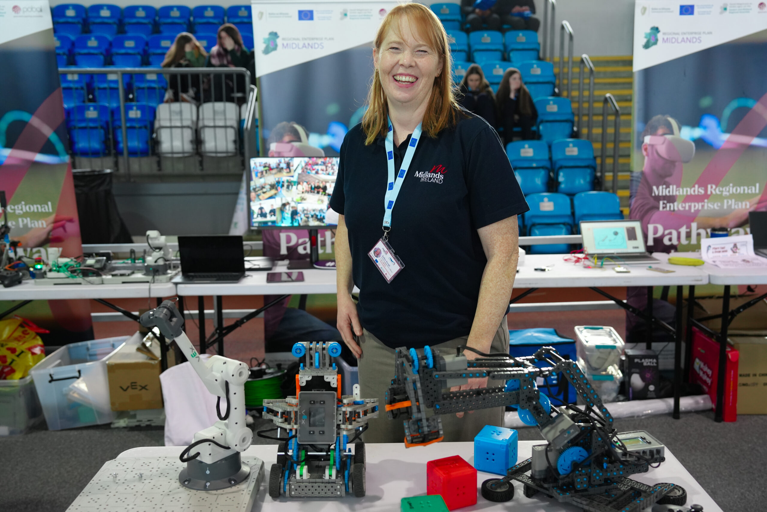 The effort and passion in bringing together all the exhibitors and speakers was paramount in showcasing Ireland’s fastest-growing and youngest region, with over 50% of its population under 35. Most of the audience were 5th and 6th Year Senior Cycle students from Laois, Offaly, Westmeath and Longford to assure them that the Midlands have a strong economic path to thrive and be a great place to live, study and work. A young female apprentice Meadhbh McLoughlin from the ESB, told RTE News who covered the event;